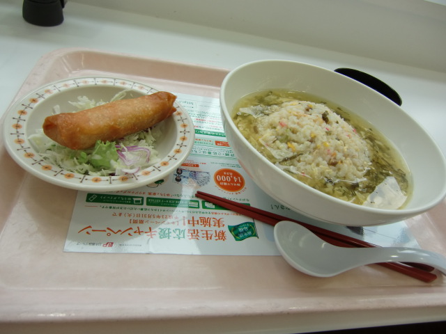食堂へスープチャーハン食べました